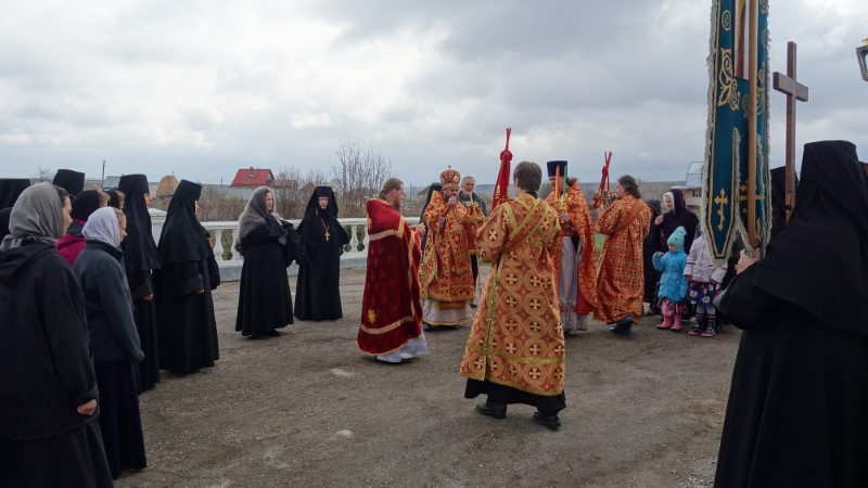 За Литургией молились настоятельница монастыря игумения Мария и сестры святой обители. По ее окончании состоялся традиционный крестный ход вокруг храма во имя Архистратига Михаила.
