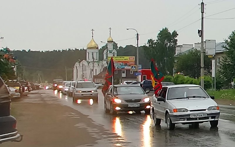 В крестном ходе и автопробеге приняли участие священнослужители Восточного благочиния, которые, продвигаясь на машине с установленной на ней иконой свв. первосвятителей Мефодия и Кирилла и передвижной колокольней, под колокольный звон окропили святой водой рабочий поселок и жителей района.