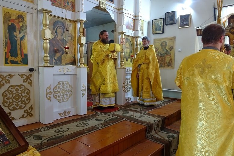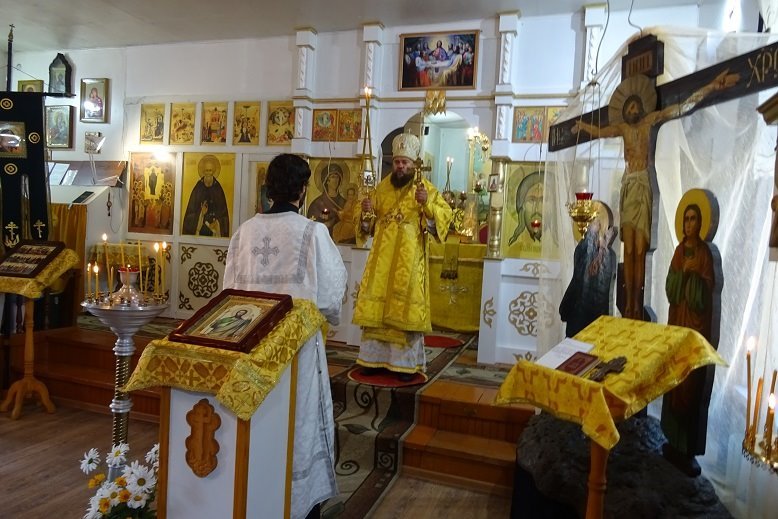Его Преосвященству сослужили иерей Николай Иванов и иеродиакон Савва (Рыбак). Богослужебные песнопения исполнил хор под управлением матушки Раисы Ивановой.