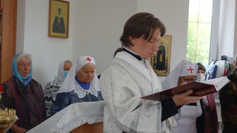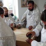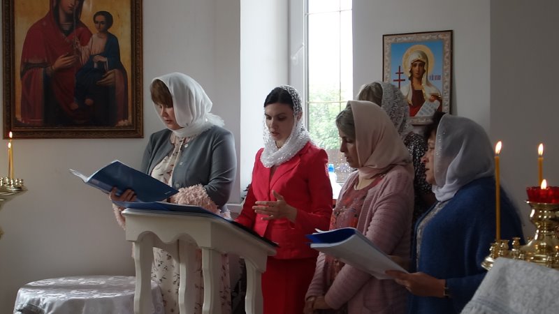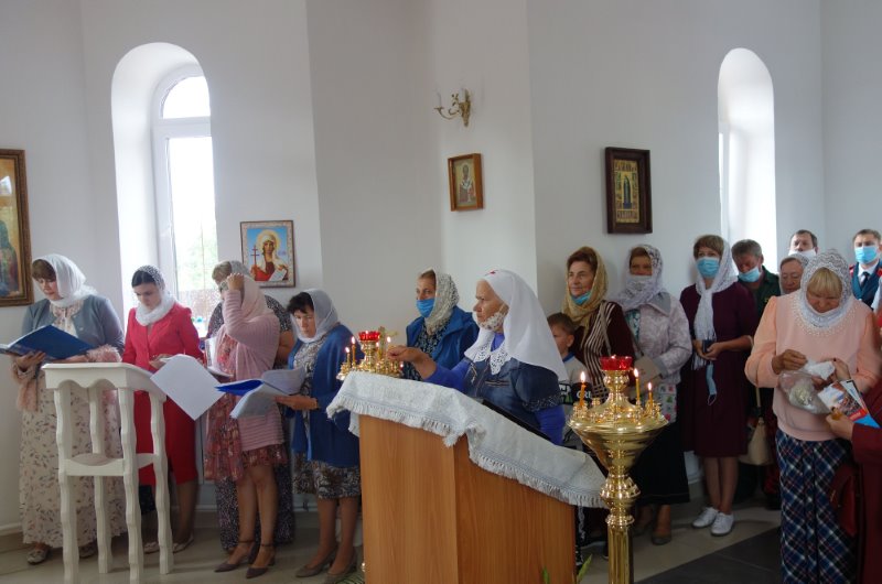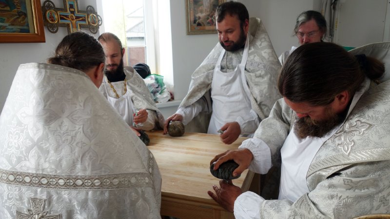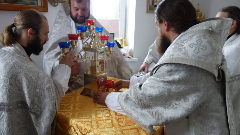 При обнесении мощей новомученика Церкви Русской, священномученика Владимира Четверина, и антиминса вокруг освящаемого храма во время крестного хода певчие пропели тропарь «Иже на камени веры создавый Церковь Твою, Блаже». При этом шествии иерей Антоний Баранов, предходя, кропил святой водой стены храма.