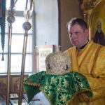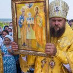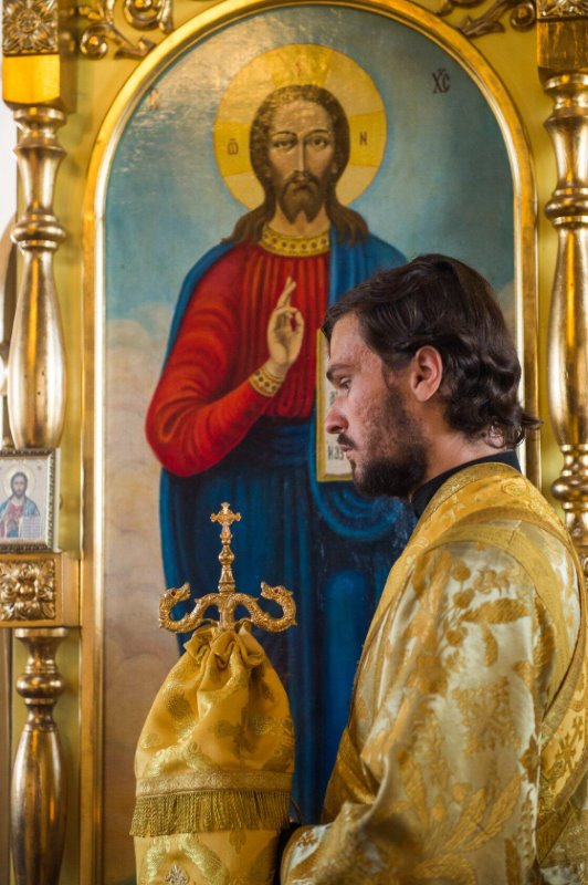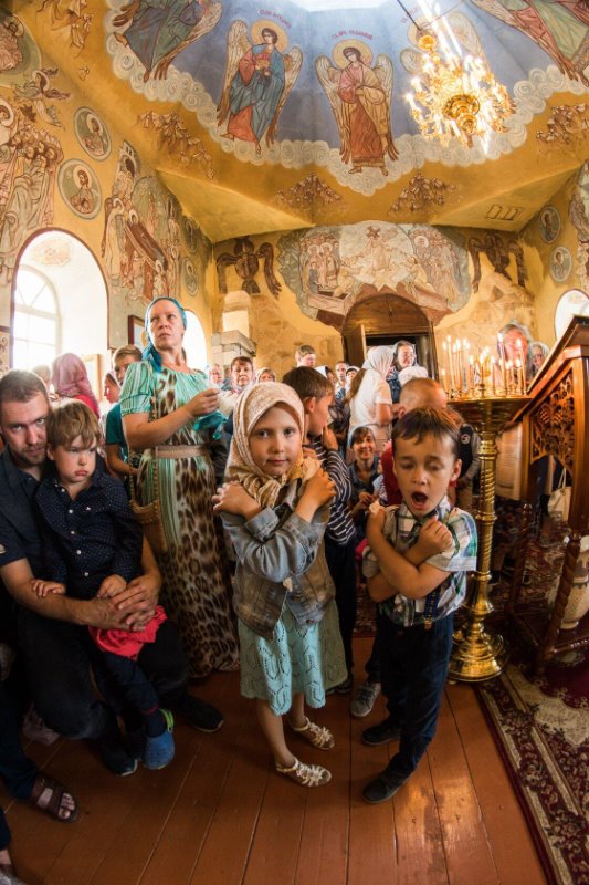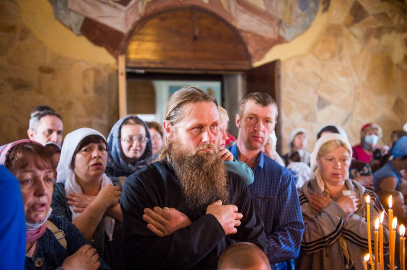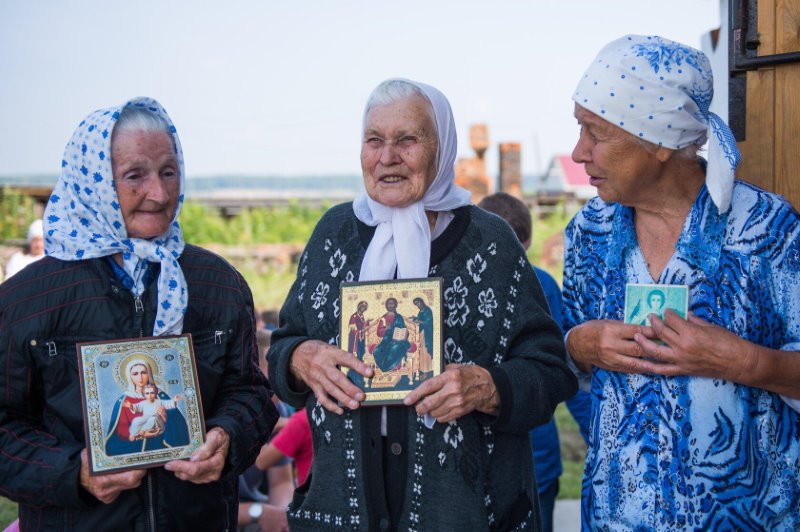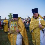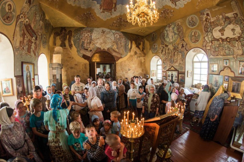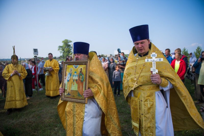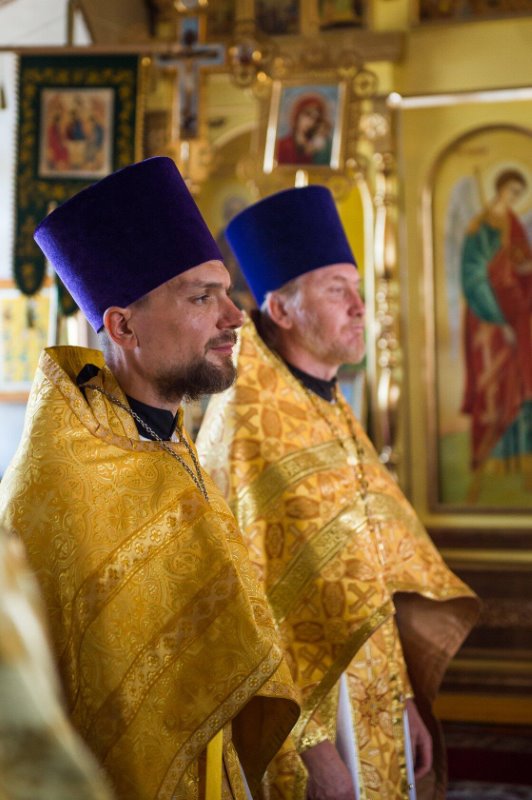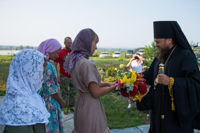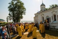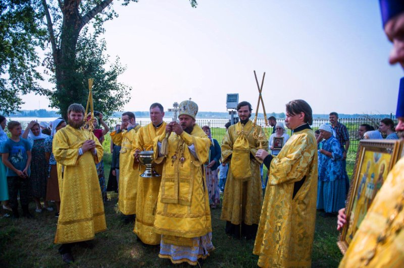В этот день в храме отмечали престольный праздник. По окончании Литургии состоялся традиционный крестный ход вокруг храма, который, можно сказать, прошел по берегу Обского водохранилища: так близко расположено к нему здание храма, прошел по мягкой скошенной траве; молитвенное шествие возглавил епископ Филипп.