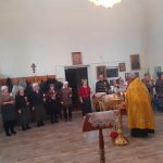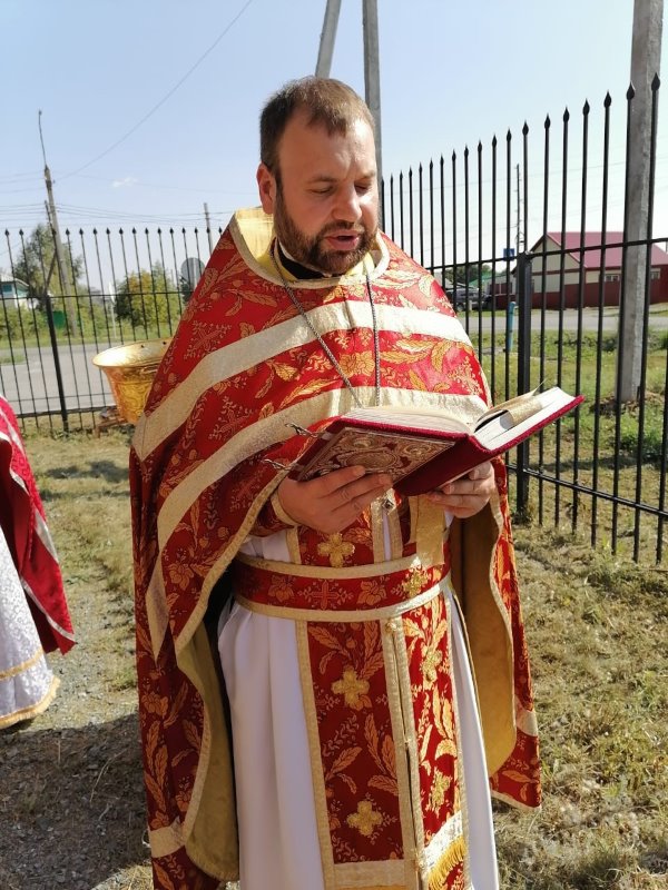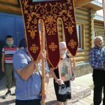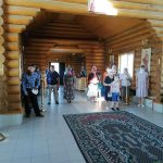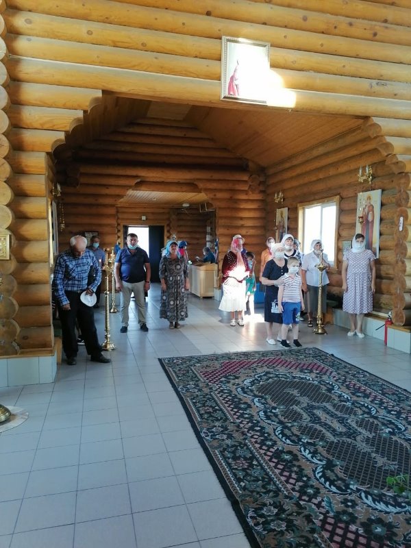 Затем иеромонах Мелхиседек обратился с поздравительным словом к прихожанам. Также с поздравительным словом к прихожанам обратился настоятель храма иерей Димитрий. Прихожане тоже поздравили батюшку с престольным праздником и подарили храму деревянный резной аналойный крест. В период пандемии, когда трапезные закрыты, была трапеза только для священнослужителей.