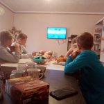 После знакомства руководителя воскресной школы матушки Натальи Прут с учащимися ребята пили чай и смотрели православный мультфильм «Пылинка и капелька»..