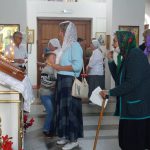 По завершении богослужения Владыка поздравил всех с праздником Преображения Господня и напомнил, что в сегодняшнем Евангелии мы слышали, как Господь незадолго до своих крестных страданий, взяв трех своих ближайших учеников: Петра, Иакова и Иоанна, взошел на гору Фавор и преобразился перед ними. Его Лицо стало подобно свету молнии, одежды — белыми как снег. Он стоял окруженный сиянием как солнце лучами. Однако и эти прекраснейшие явления тварного мира могут изобразить лишь тень того, что произошло в этот миг на Фаворе.