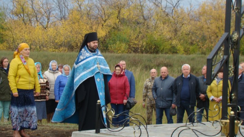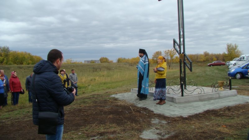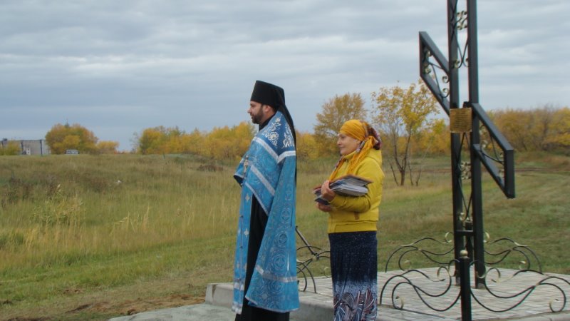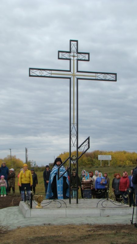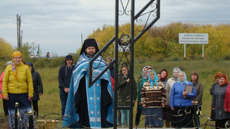 По завершении освящения поклонного Креста батюшка обратился к присутствующим на мероприятии с напутственным словом, поблагодарил родственников Ильи Эмиха, также присутствующих на мероприятии, за воспитание внука и сына и вручил благословенную Архиерейскую грамоту Преосвященнейшего Владыки Филиппа, епископа Карасукского и Ордынского, устроителю поклонного Креста — Илье Эмиху.