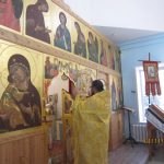 В связи с неблагоприятной эпидемиологической ситуацией в районе богослужения совершаются без прихожан. Священник молится за весь приход и о прекращении морового поветрия.