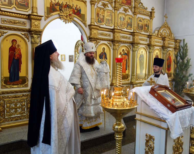 По окончании Литургии перед рождественской свечой, знаменующей Вифлеемскую звезду, были пропеты тропарь и кондак праздника Рождества Христова.