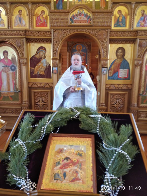 10 января иеромонах Мефодий (Сиваков) отслужил Божественную литургию. Прихожане поздравили своего батюшку рождественскими песнопениями.