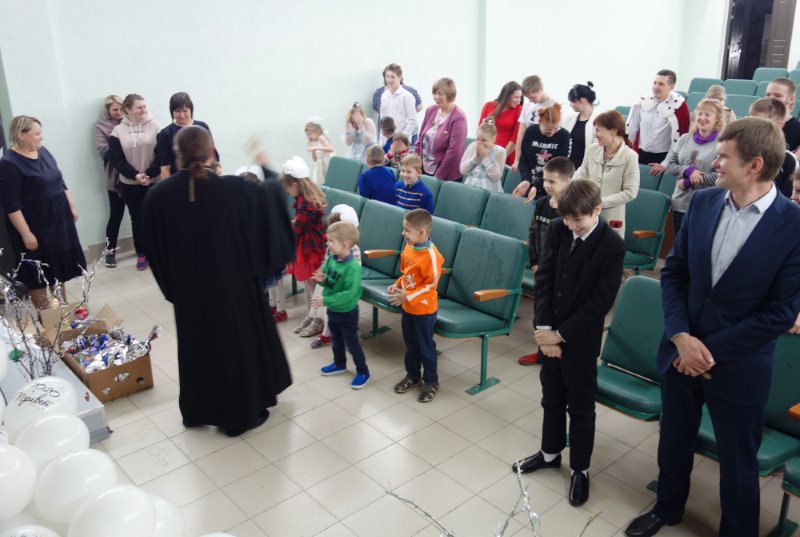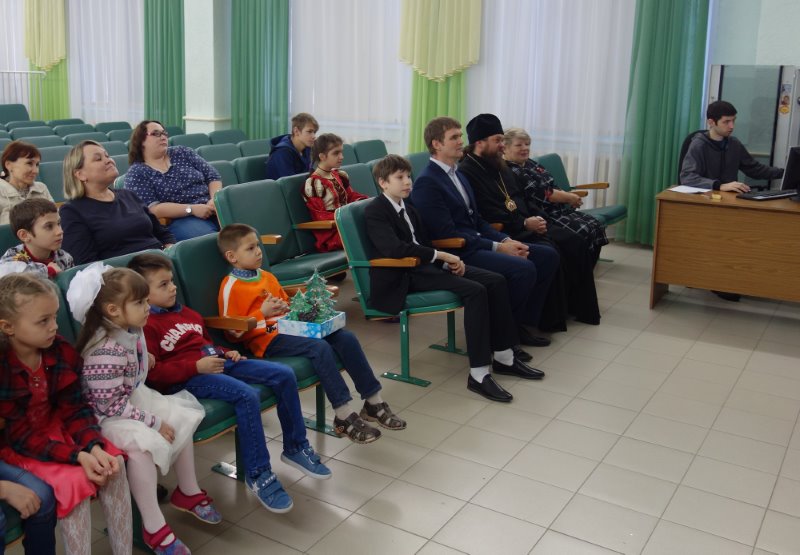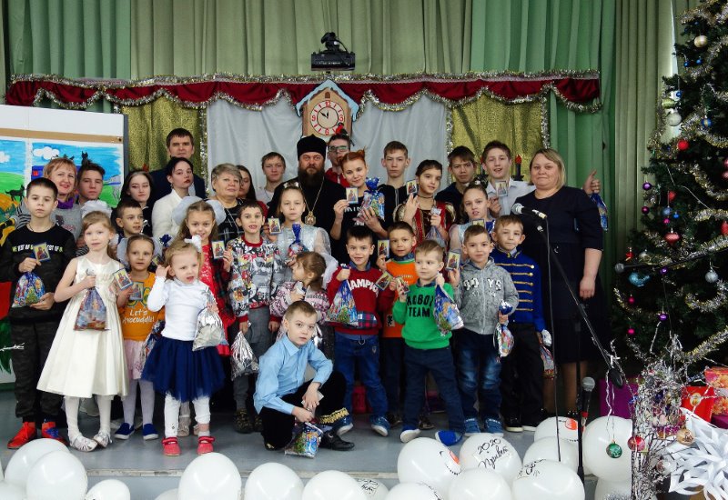 По его окончании Владыка сердечно поздравил детей и их воспитателей с Рождеством Христовым, пожелал детям здоровья, радости, крепкой дружбы и помощи Родившегося Богомладенца, а воспитателям — доброты, терпения, любви и внимания к детям, которые как воздух необходимым их воспитанникам.