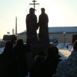Постамент для обелиска подготовили заранее, еще летом, а скульптуру в г. Купино доставили в конце декабря прошлого года и сразу установили на постамент — в канун Празднования Рождества Христова. А в канун празднования Богоявления памятник равноапостольным братьям освятили.