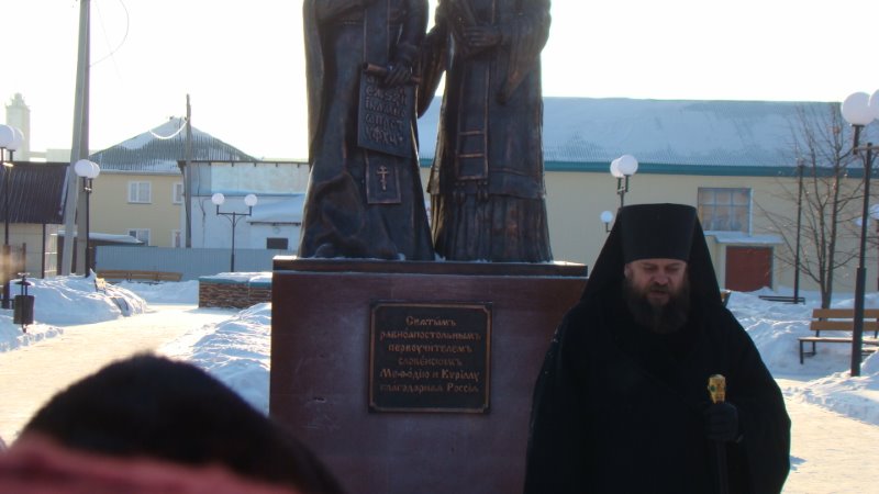 — Сегодня мы с вами стали свидетелями важнейшего события в жизни г. Купино и всей нашей Карасукской епархии. Освящение памятника св. равноапостольным братьям Кириллу и Мефодию имеет значение не только для современников, но и для последующих поколений. Этот памятник св. просветителям будет напоминать всем, приходящим сюда, о духовном просвещении славянского народа, об истоках нашей русской культуры и истории нашего Отечества. Установленный рядом с Монументом Воинской Славы, он также будет напоминать о воинах, защищавших нашу Родину и погибших на полях сражений Великой Отечественной войны. А кто знает историю своей Родины и бережно ее охраняет, тот непременно станет истинным ее патриотом и достойным защитником.