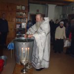 По заамвонной молитве, согласно Уставу, состоялся чин великого освящения воды — Великой агиасмы. По его освящении батюшка окропил святой водой храм и молящихся. После славления празднику он поздравил прихожанам храма с праздником Богоявления.