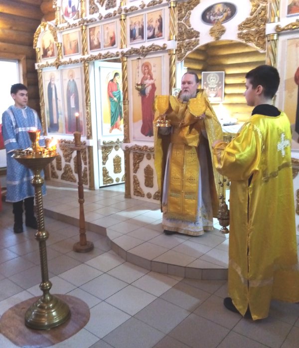 7 февраля/воскресенье. В день празднования Собора новомучеников и исповедников Церкви Русской была совершена Божественная литургия в храме во имя святых благоверных князей-страстотерпцев Бориса и Глеба села Багана.По окончании Литургии настоятель храма иеромонах Мефодий (Сиваков) отслужил молебен и заупокойную литию по всем усопшим, пострадавшим в годину гонений за веру Христову. В этот день в храме было много молящихся, настоятель рассказал им об этом необычном дне: