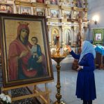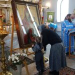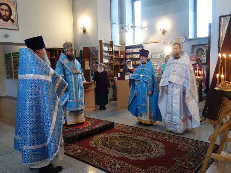 По отпусте Литургии был совершен молебен перед Иверским образом Пресвятой Богородицы, который украшает собор и который является списком с Иверской иконы Божией Матери со Святой Горы Афон.
