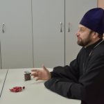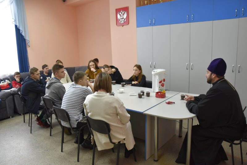 За чашкой чая состоялась беседа, на которой батюшка огласил обращение Святейшего Патриарха Московского и всея Руси Кирилла по случаю празднования Дня православной молодежи, рассказал о патриотизме и о любви, отметив, что для многих современных молодых людей любовь ― это синоним наслаждения, любить ― значит получать удовольствие. Но это не так, любовь ― это не удовольствие, любовь — это жертва. Человек способен любить, если он способен жертвовать.