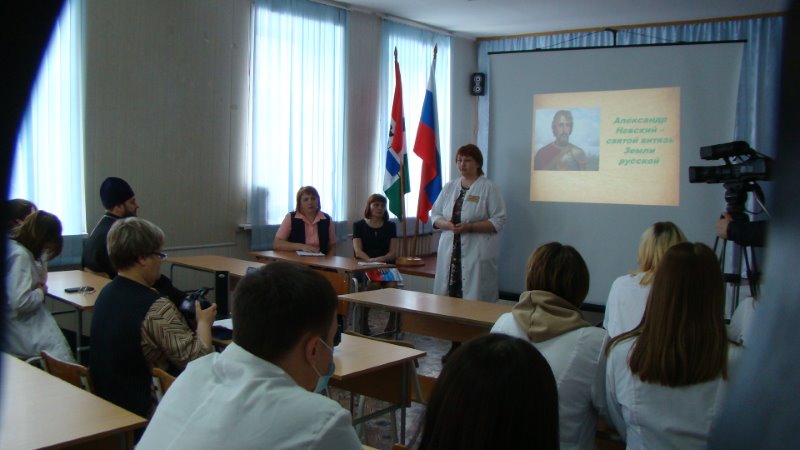 На мероприятии присутствовали сотрудники Центральной библиотеки Купинского района. Они рассказали студентам о святом благоверном князе Александре Невском, представили о нем литературу и провели видеопрезентацию в целях воспитания подрастающего поколения, будущих медработников, на духовно-нравственных и православных традициях. Такие мероприятия в г. Купино стали уже традиционными.