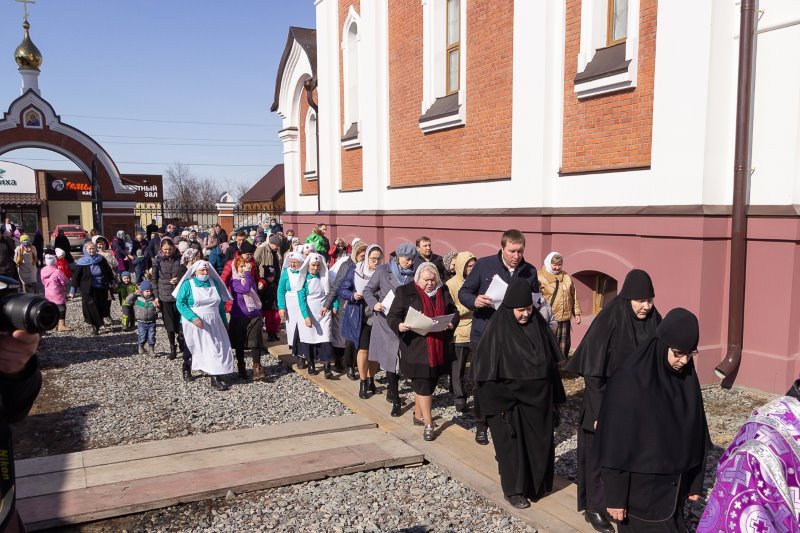 11 апреля, в 4-ю неделю Великого поста, митрополит Новосибирский и Бердский Никодим в сослужении архиепископа Анадырского и Чукотского Ипатия и епископа Карасукского и Ордынского Филиппа совершил первую Божественную литургию в храме в честь иконы Божией Матери «Скоропослушница». Перед началом Литургии правящий архиерей совершил чин Великого освящения храма.