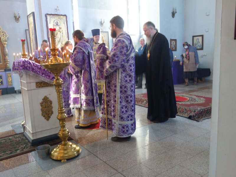 10 апреля/суббота. Накануне великого освящения новопостроенного храма в честь иконы Божией Матери, именуемой «Скоропослушница», на ст. Мочище Его Высокопреосвященство Ипатий, архиепископ Анадырский и Чукотский, и Его Преосвященство Филипп, епископ Карасукский и Ордынский, совершили всенощное бдение в Троицком соборе р. п. Ордынское.