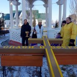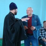 Иеромонах Мелхиседек с иконой св. благ. великого князя Александра Невского в руках, прибывшей в Купинский район Крестным ходом со святынями, который проходит по приходам Карасукской епархии, обратился к участникам соревнований с напутственным словом.