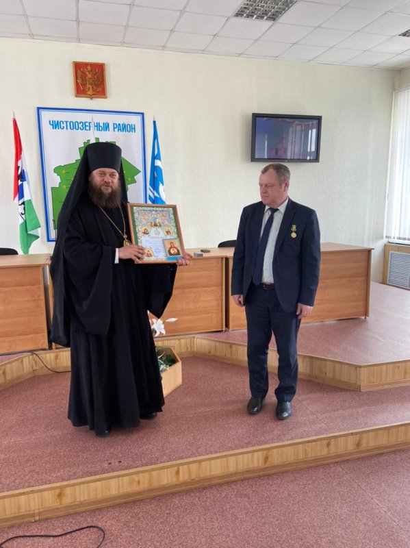 26 апреля/понедельник. Епископ Филипп и иерей Илия Березовский, руководитель отдела Карасукской епархии по взаимодействию с вооруженными силами, правоохранительными органами и казачеством, в здании администрации Чистоозерного района встретились с главой района Аппелем Александром Викторовичем, главным врачом ГБУЗ НСО «Чистоозерной центральной районной больницы» Зиминым Александром Викторовичем и медицинским персоналом больницы.