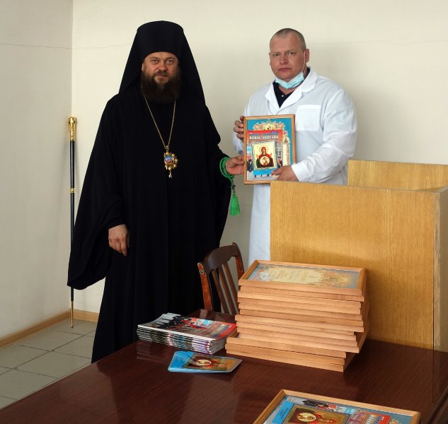 Владыка от всего сердца поблагодарил Александра Владимировича и медицинских работников больницы за их неоценимый вклад в борьбе с коронавирусной инфекцией и наградил архиерейскими грамотами врачей, которые работали без сна и отдыха весь период распространения губительного поветрия в «красной зоне», ежеминутно рискуя своим здоровьем и спасая пациентов больницы от нового малоизученного заболевания — COVID-19.