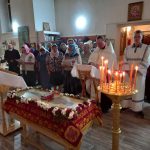 Настоятель храма иерей Михаил Прут в конце богослужения зачитал прихожанам Пасхальные послания Святейшего Патриарха Кирилла и Преосвященнейшего епископа Филиппа.