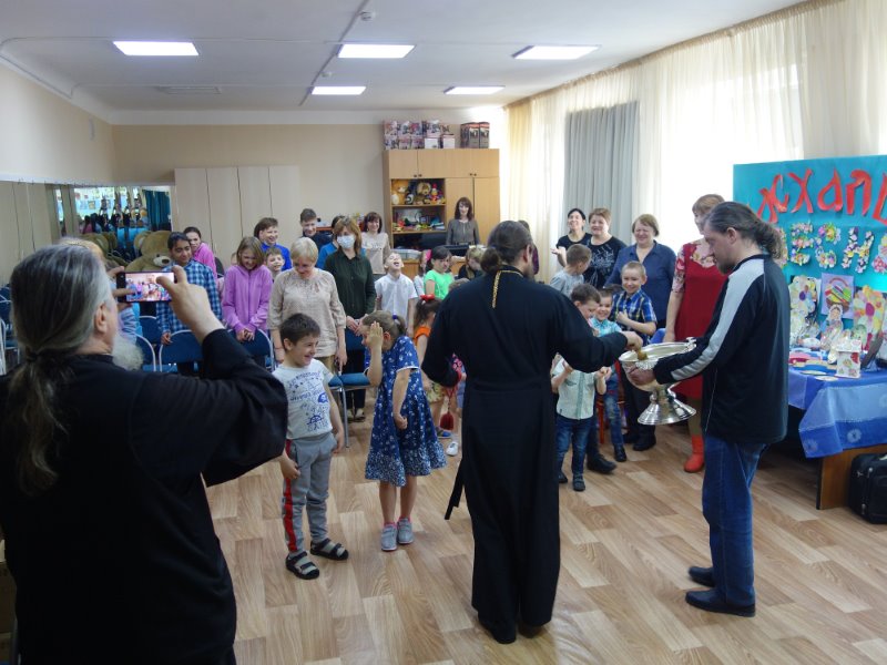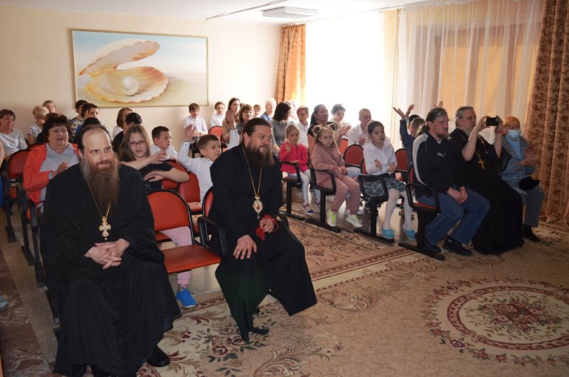 После концерта Владыка во всех центрах поздравил детей и взрослых с самым главным праздником и побеседовал о празднике Святой Пасхи, о женах-мироносицах, которые первыми увидели воскресшего Спасителя, о чуде схождения благодатного огня накануне православной Пасхи на Гробе Господнем в Иерусалиме, который символизирует нерукотворный свет Воскресения Христова.