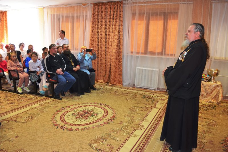Владыка прочитал вместе с детьми молитву «Отче наш» и окропил всех святой водой. И эти мгновения, когда брызги святой воды падают на лица детей, на их руки, на одежду, вызывают у них общее ликование. Слышится заразительный детский смех, на лицах — радость и улыбки. И сразу все кругом оживает! Как приятны эти мгновения в детских домах!