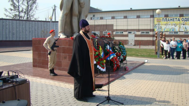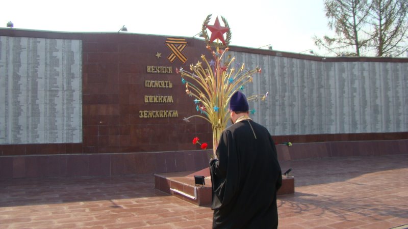 По завершении богослужения верующие с живыми цветами в руках проследовали к мемориальному комплексу, где состоялся митинг, посвященный 76-ой годовщине Победы в Великой Отечественной войне, и в завершение митинга все присутствующие почтили память павших земляков-купинцев минутой молчания и по традиции возложили живые цветы к мемориалу.