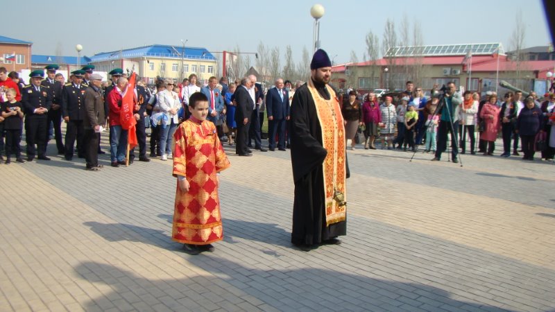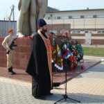 Иеромонах Мелхиседек (Свистелин), настоятель храма, благочинный Центрального округа Карасукской епархии, совершил заупокойную литию на мемориале по всем тем, кто приближал Великую Победу.