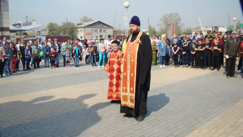 По окончании молебна батюшка обратился к молящимся со словом, в котором рассказал, как нелегко ковали победу наши воины на фронтах и в партизанских отрядах, и как не менее героическим трудом ковали ее жители сел и городов в глубоком советском тылу, и вспомнил всех прихожан храма, ветеранов войны и труда, которые строили Преображенский храм, кто пел на клиросе, кто благоукрашал его прихрамовую территорию и всех тех, «кого сегодня с нами нет».