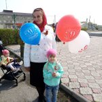 На площади собралось много баганцев с цветами, волонтеры раздавали всем
