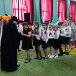 Владыка рассказал детям о празднике Пасхе, о схождения Благодатного огня в Иерусалиме и затем окропил всех святой водой.