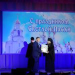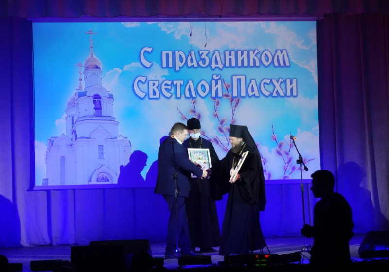 Епископ Филипп со сцены Дома культуры поздравил всех со святыми пасхальными днями Светлого Христова Воскресения и Днем Победы и сказал, что «Господь отдал Свою жизнь для победы над вечной смертью каждого из нас и даровал нам победу в этой самой жестокой войне в истории человечества. И по смыслу и по дате эта Великая победа в этой самой страшной войне неотделима от праздника Христова Воскресения».