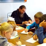 Иерей Антоний Баранов с преподавателями и детьми пропели тропарь Пасхи. Затем дети читали стихотворения, посвященные св. благоверному великому князю Александру Невскому, и пасхальные стихи.