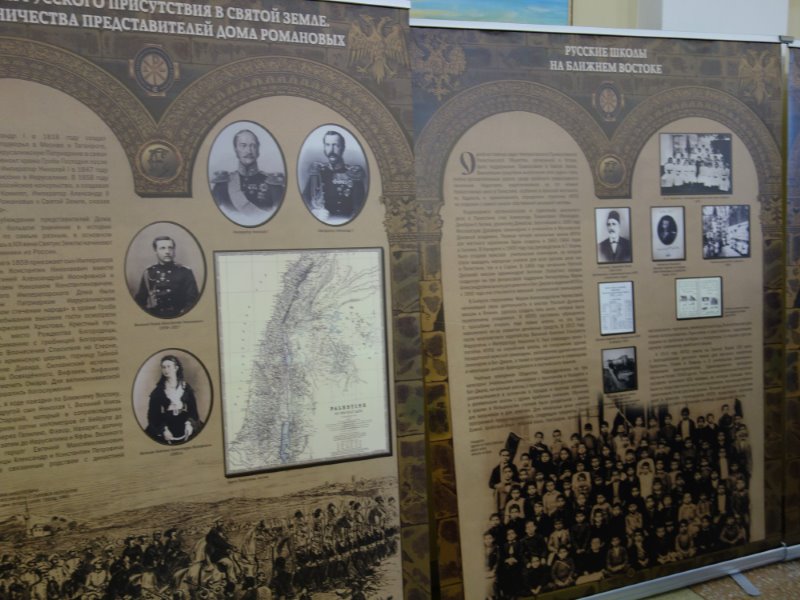 Выставка посвящена истории Императорского православного Палестинского Общества и русском присутствии на Ближнем Востоке, об Августейших особах Императорского Дома, о истории паломничества на Святую землю.