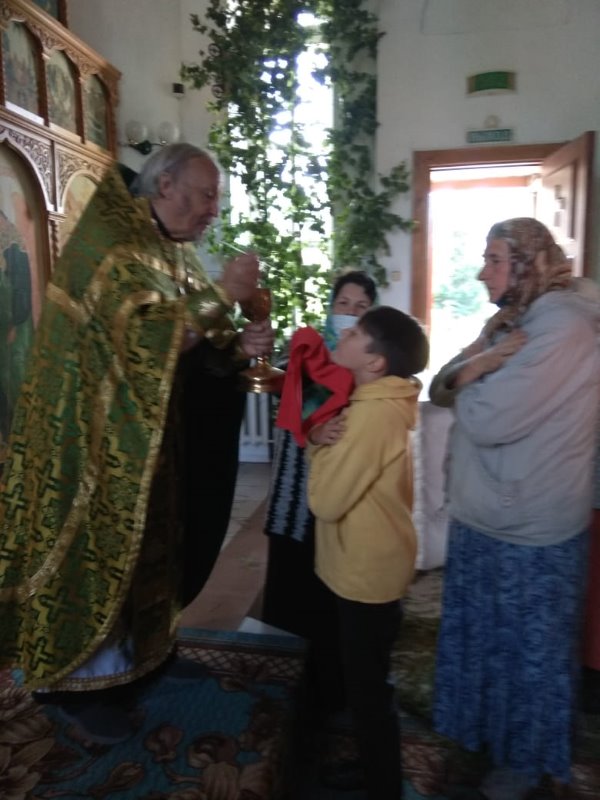 После завершения панихиды в родительскую субботу, 19 июня, храм в честь Рождества Христова с. Кочки украсили цветами, зеленью и березками.В благоухающем храме прошло вечернее богослужение. За Литургией было многолюдно, Святых Христовых Таин причастилось несколько детей и взрослых.