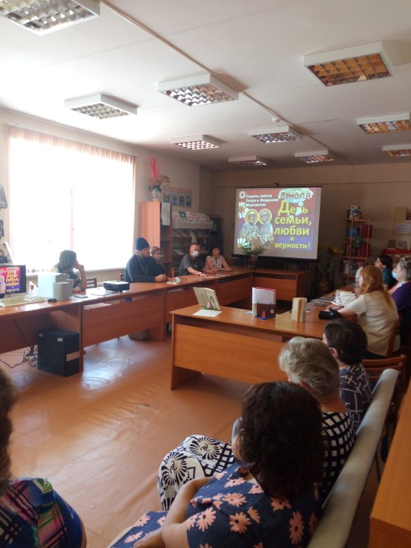В рамках празднования церковно-государственного праздника Дня семьи, любви и верности в центральной районной библиотеке с. Довольного состоялся круглый стол, посвященный этой теме.В работе круглого стола приняли участие начальник отдела культуры Доволенского района Глухова Гульнара Гургеновна, работники библиотеки, представители общественности, руководитель и автор международного проекта «Семейные ценности России» Вера Чмутова, представители молодежи и прихожане храма.