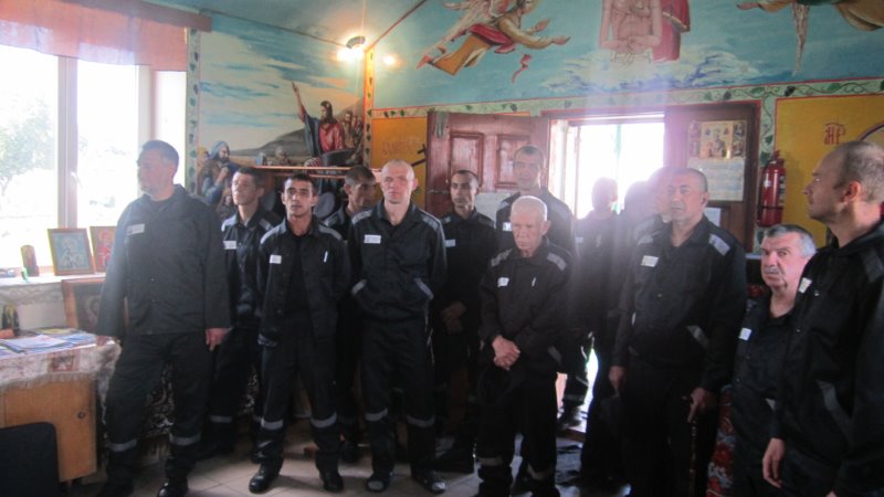 Для поклонения осужденным были привезены святыни: икона святого благоверного князя Александра Невского с частицей его святых мощей и Честный Животворящий Крест с частицей Креста Господня.