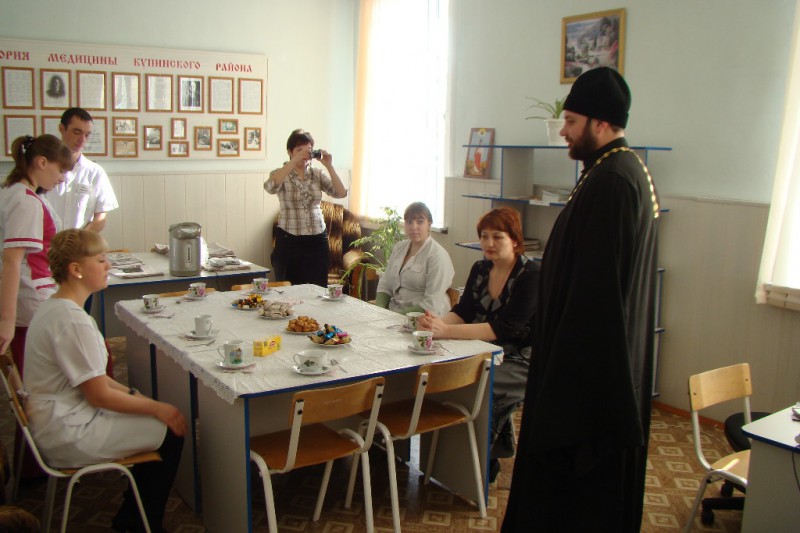 В медицинском техникуме города Купино Госнаркоконтролем по Новосибирской области проводилась беседа с учащимися техникума о вреде наркотиков. В беседе принял участие иеромонах Мелхиседек. Он рассказал о вреде наркомании и о том, какую помощь оказывает Православная Церковь в борьбе с этим недугом.