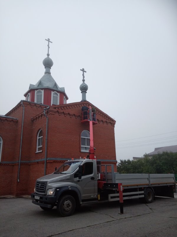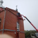 Так, 5 августа были установлены иконы на стены храма с трех сторон и крыша на ремонтирующееся здание под воскресную школу.