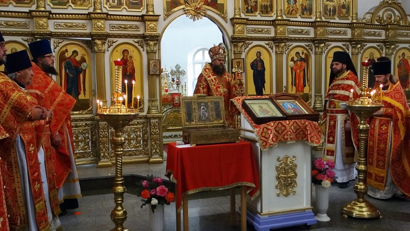 По окончании Литургии Владыка возглавил молебен перед ковчегом с частицей мощей св. благоверного великого князя Александра Невского, который 6 августа, был доставлены в Кафедральный собор г. Карасука из Новосибирской митрополии.
