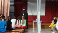 Иеромонах Мелхиседек провел духовно-нравственную беседу с молодежью на тему «Александр Невский: Запад и Восток, историческая память народа». Затем ответил на интересующие молодежь вопросы.