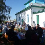 По окончании архипастырского слова всех гостеприимно пригласили на праздничную трапезу, которая состоялась под открытым небом — во дворе храма.
