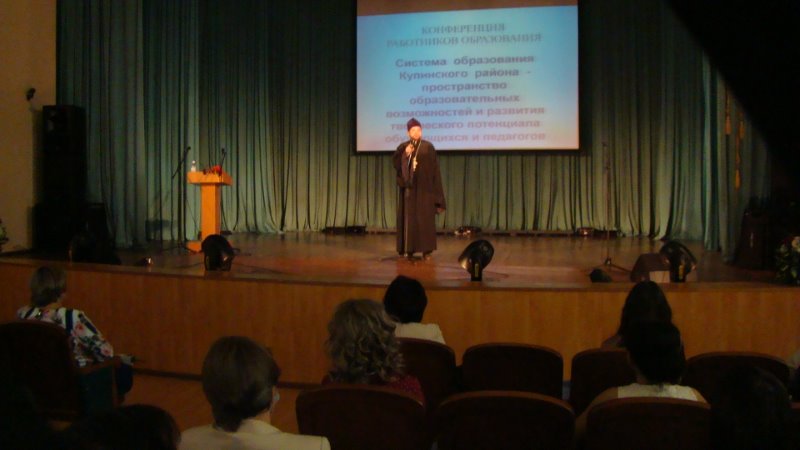 27 августа/пятница. Иеромонах Мелхиседек (Свистелин), благочинный Центрального округа, руководитель Отдела религиозного образования и катехизации Карасукской епархии, принял участие в августовской конференции работников образования на тему: «Система образования Купинского района – пространство образовательных возможностей и развития творческого потенциала обучающихся и педагогов», которая проходила в районном Дворце культуры г. Купино.Иеромонах Мелхиседек поблагодарил учителей за совместное плодотворное сотрудничество, поздравил с новым учебным годом и преподнес благословение на новый учебный год.