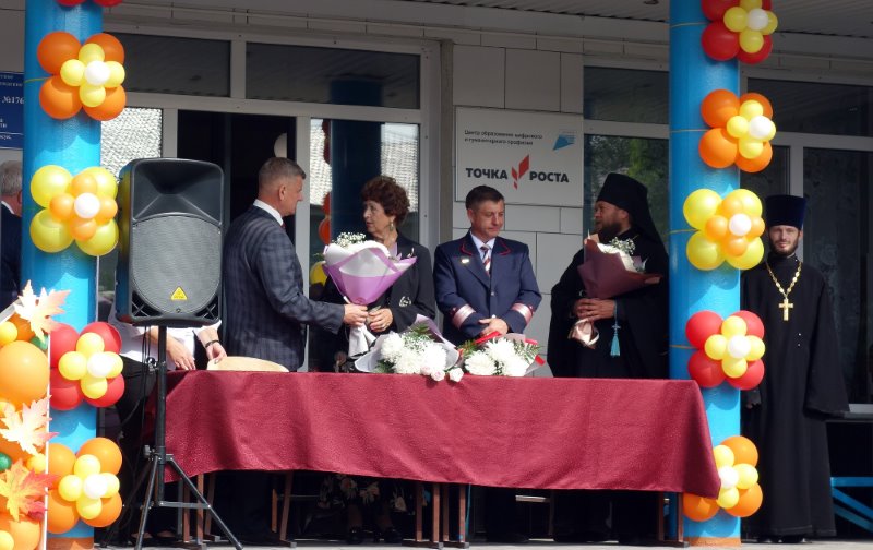 1 сентября 2021 года Его Преосвященство епископ Филипп и иерей Антоний Баранов приняли участие в праздничной линейке учащихся технического лицея №176 г. Карасука, посвященной началу нового учебного года.
