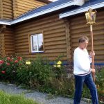 По окончании чина погребения иеромонах Мефодий, подняв Плащаницу Богородицы, вместе с прихожанами прошел крестным ходом вокруг храма с пением «Святый Боже, …».