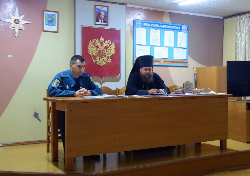 Владыка провел беседу с офицерами МЧС. В ходе беседы он затронул вопросы внутренней духовной жизни каждого человека, проблемы суицида среди молодежи, вреда алкоголизма, наркомании, игромании, зависимости человека от компьютера, интернета, телефона, необходимости почитания и уважения своих родителей и людей старшего возраста, а также необходимости посещения храма и исполнения заповедей Божиих.