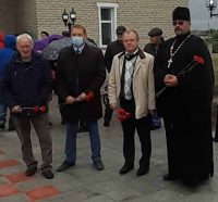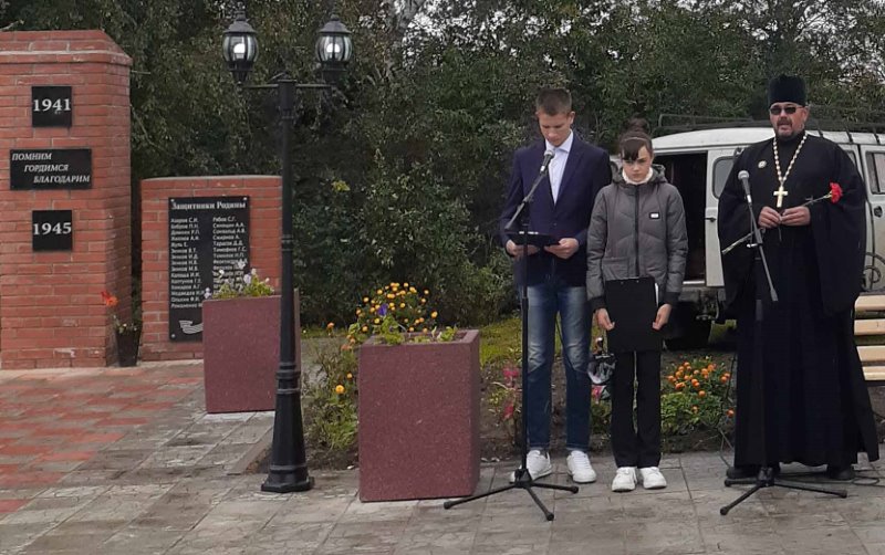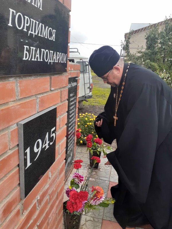 По окончании Литургии настоятель храма иерей Илия Березовский с прихожанами и паломниками принял участие в открытии памятника Воинской славы.