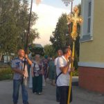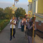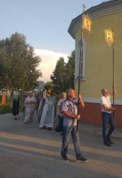 По его окончании батюшка, подняв Плащаницу Богородицы, вместе с прихожанами прошел крестным ходом вокруг храма с пением «Святый Боже, …».